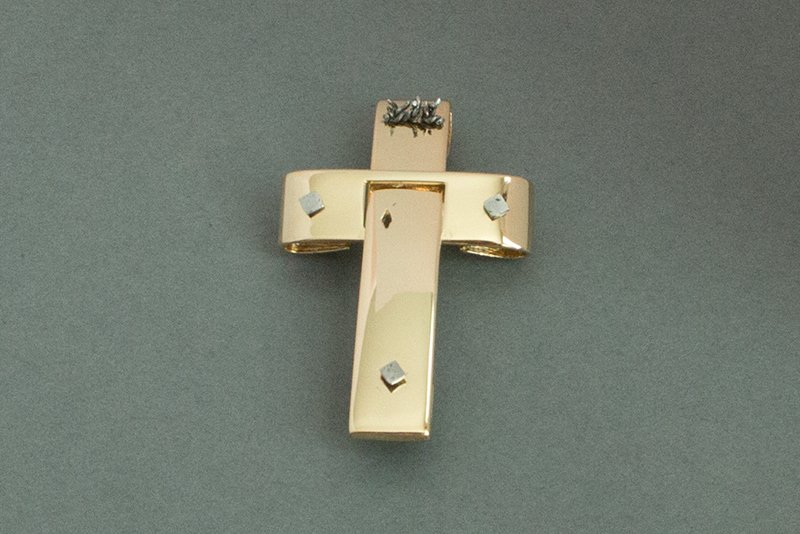Jesus ist hier in Form eines Kreuzes dargestellt. Er ist anhand folgender Attribute zu erkennen: Dornenkrone und Nägel. Um den Schmerz zu vermitteln, wurden die Nägel durchgeschlagen und kommen auf der Rückseite empor- er ist somit für Jedermann bei der bloßen Berührung des Kunstwerkes spürbar. Durch das Spiegelbild wird vermittelt, dass Jesus nur ein Mensch war- genau wie wir auch. Man muss nur an sich glauben, um Wunder vollbringen zu können.